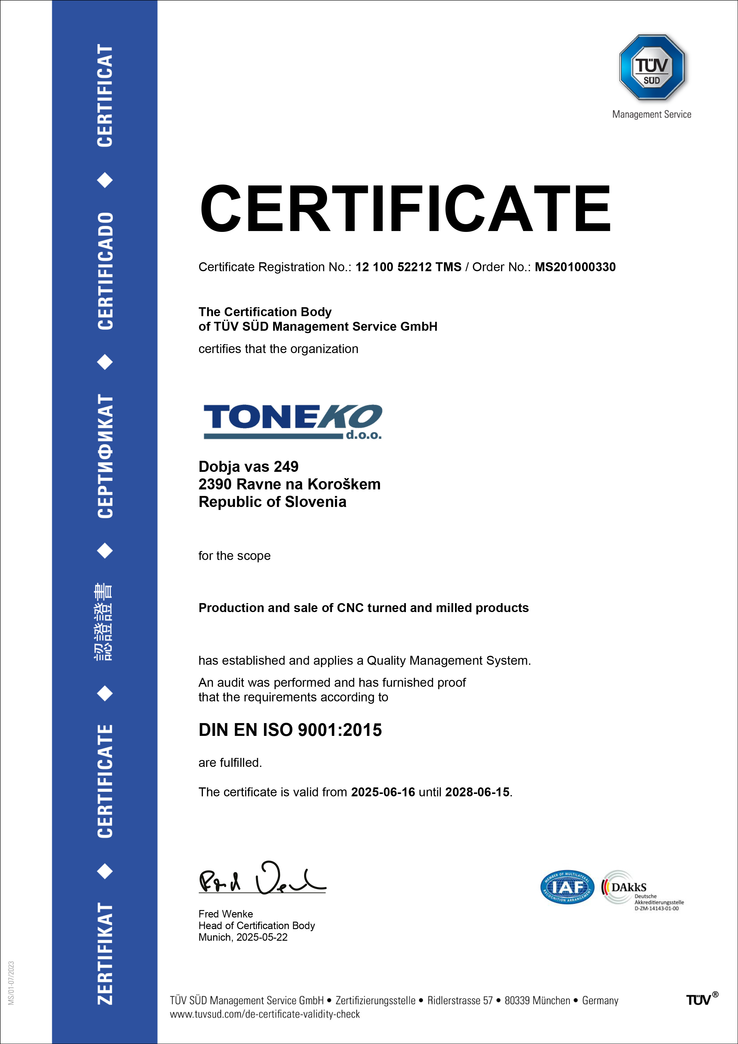 Naši izdelki morajo v popolnosti izpolniti pričakovanja odjemalca. Odjemalec je naš partner, njegovo zadovoljstvo je pogoj za naš uspeh;