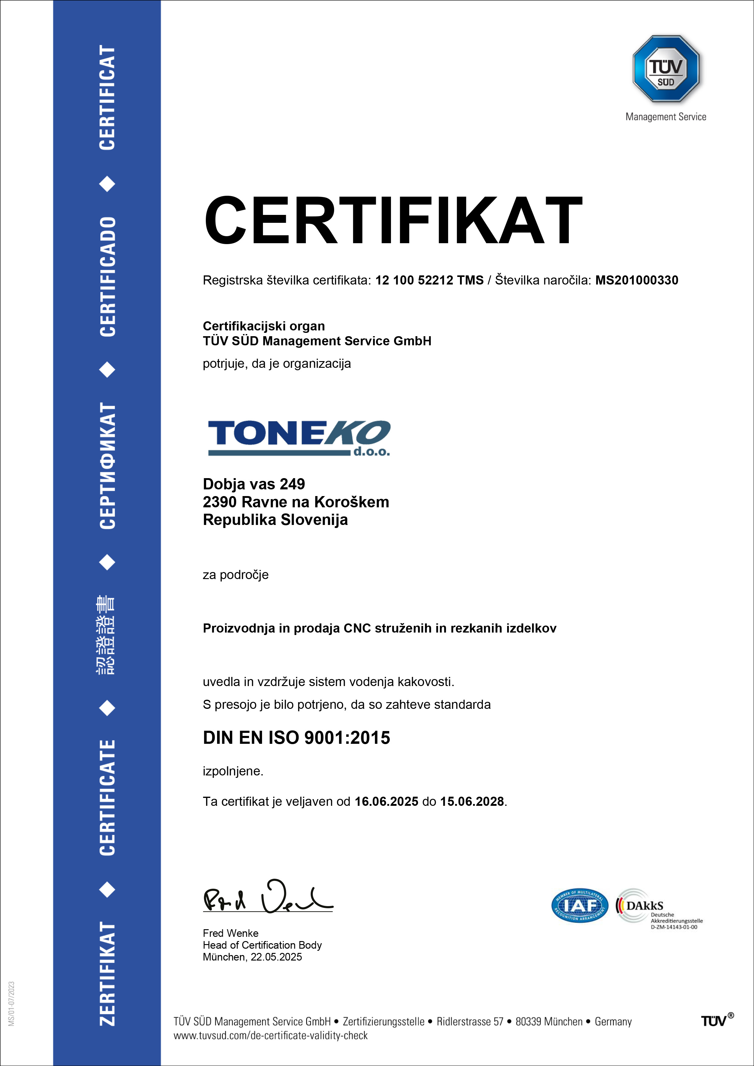 Zavedamo se, da je kakovost vseh procesov potreben pogoj za uresničitev smelega cilja in zato sistemu kakovosti posvečamo veliko pozornost.